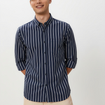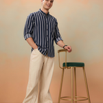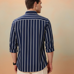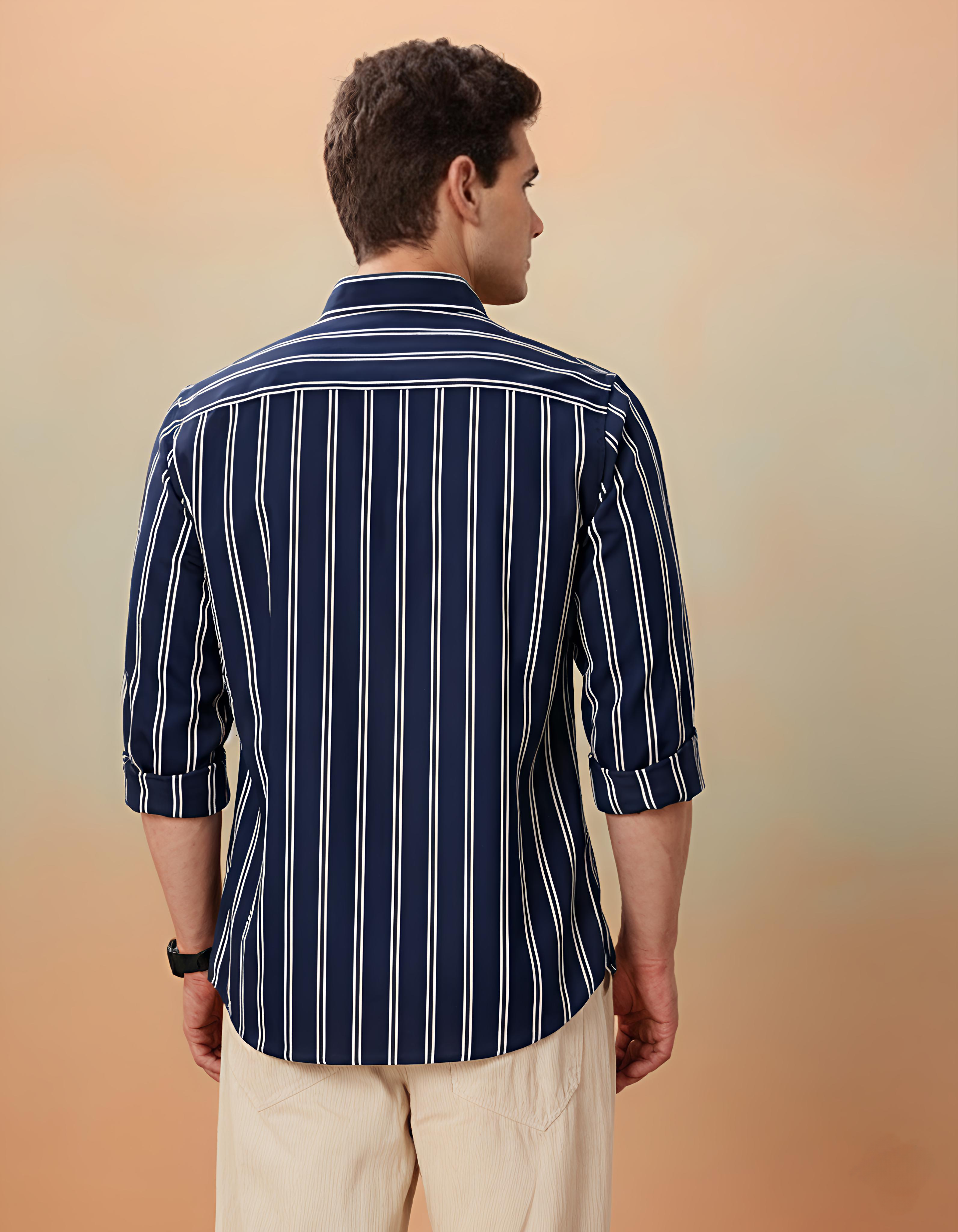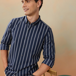 Timeless, confident, and always in style — the BlueEdge Denim Stripe Shirt is your all-day go-to. Made from premium Giza cotton, this shirt features elegant vertical stripes on a classic denim blue base, offering a crisp, masculine aesthetic that works across both casual and semi-formal settings.