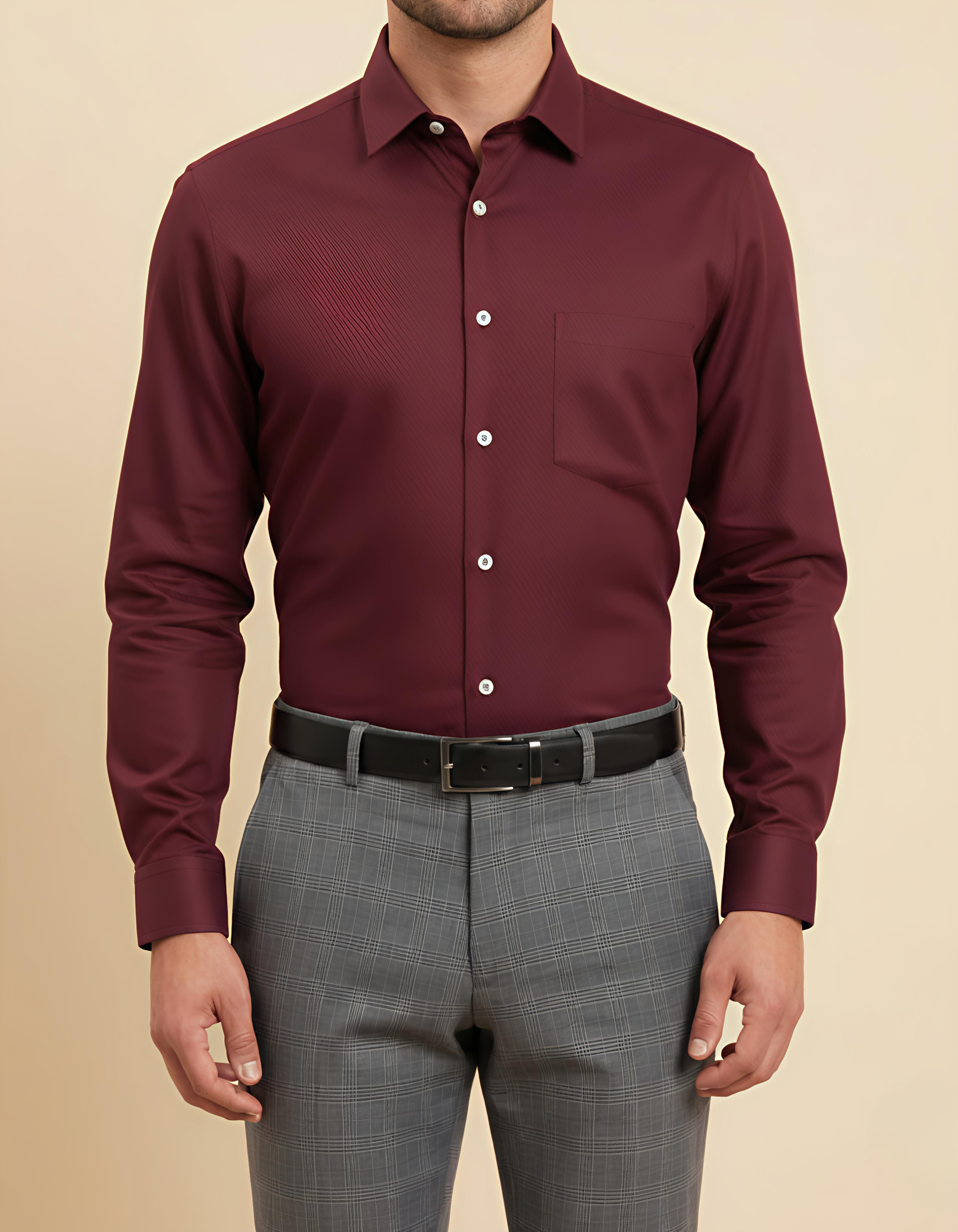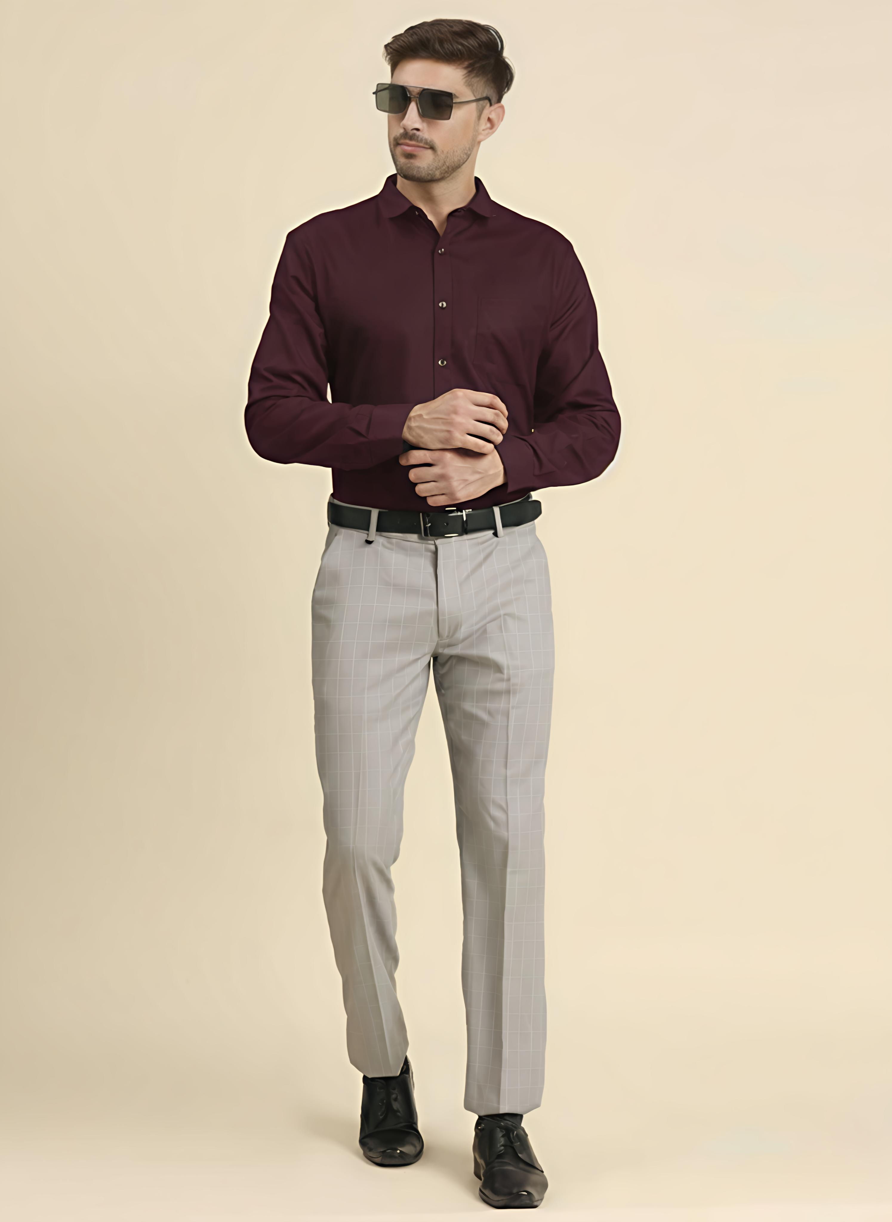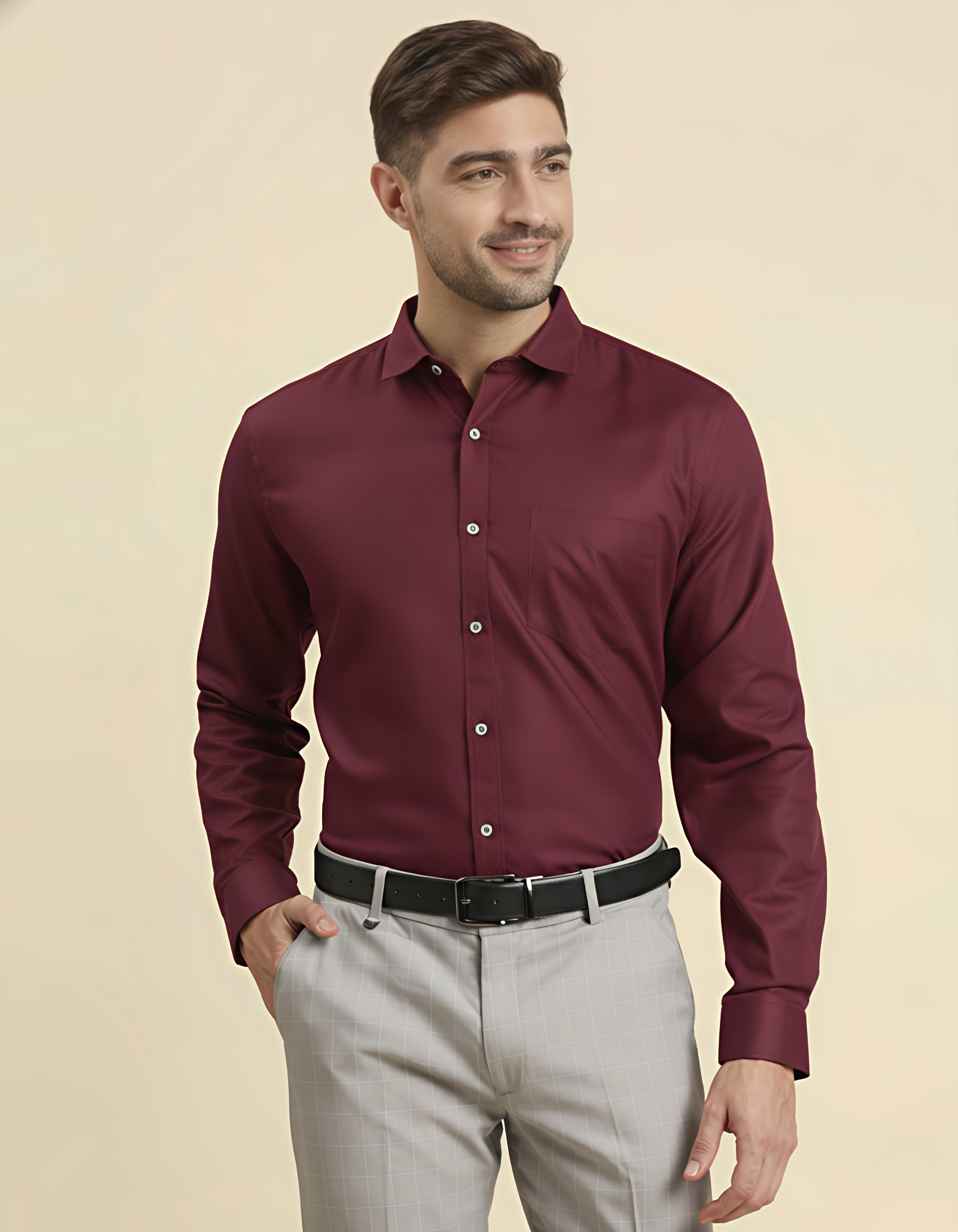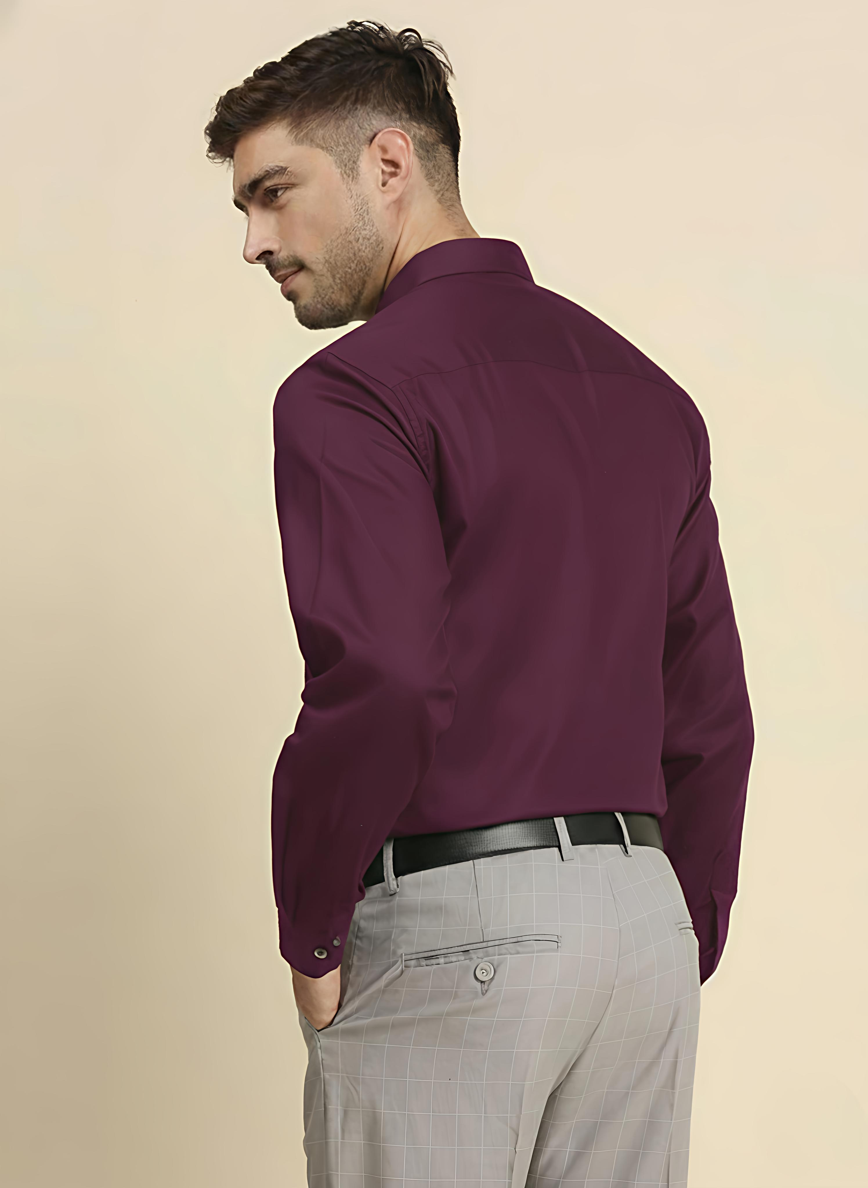 Add a touch of sophistication with this Men’s Solid Burgundy Cotton Shirt, made from premium 100% cotton for exceptional softness and comfort. Designed with a regular fit and full sleeves, this shirt is perfect for both formal and casual occasions, offering a refined and bold look.