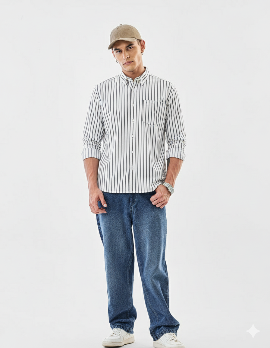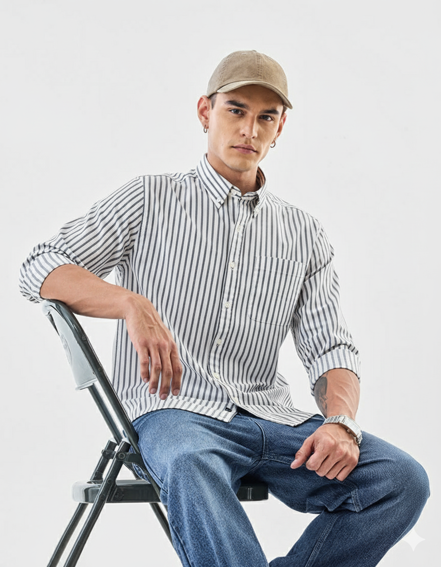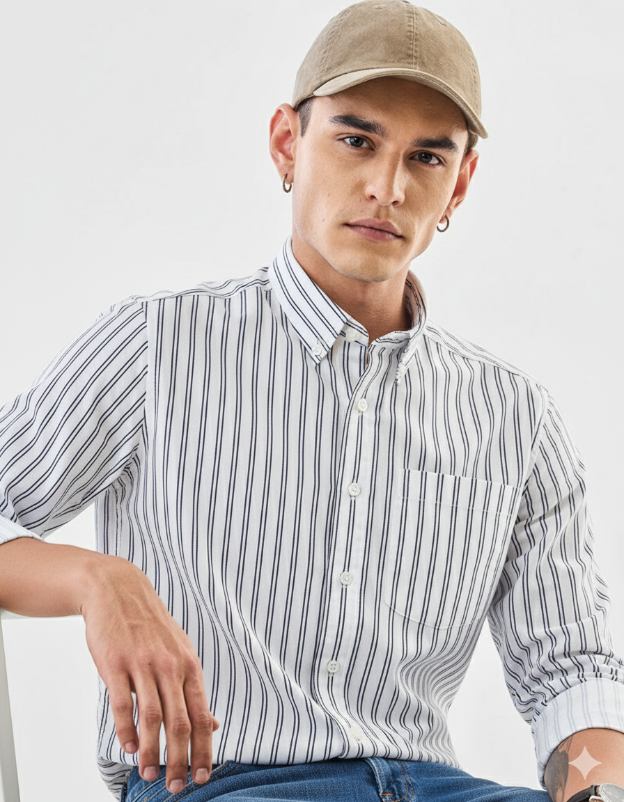 Elevate your essentials with the CloudForm Steam White Striped Shirt — a premium Giza cotton piece designed for clean, confident dressing. Featuring delicate tonal stripes in a muted steam white finish, this shirt balances subtle texture with a fresh, minimalist aesthetic. Perfect for both weekday meetings and weekend moments, it’s built for men who appreciate understated elegance.