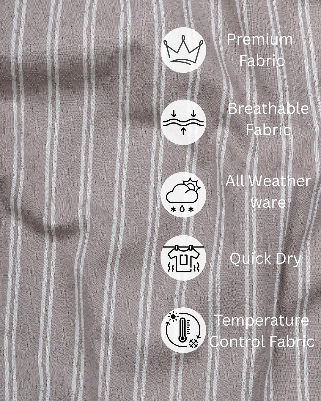 Bring earthy tones and clean lines into your wardrobe with this Men’s Beige Red Striped Cotton Shirt. Featuring bold white vertical stripes over a deep rust-red base, this piece is a fresh take on smart-casual dressing. Tailored from premium cotton in a slim fit, it’s breathable, sharp, and easy to style with jeans, chinos, or even layered under a jacket.