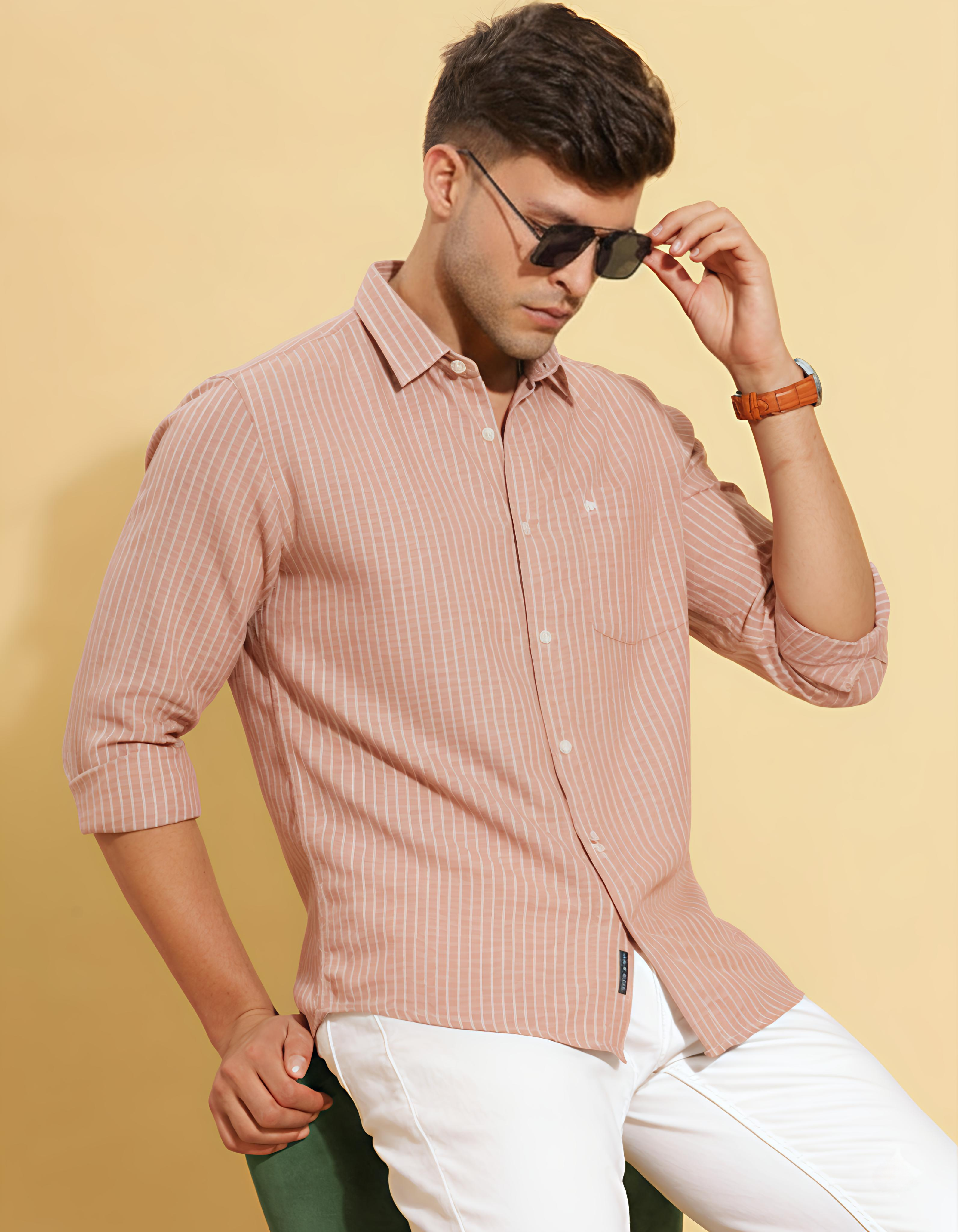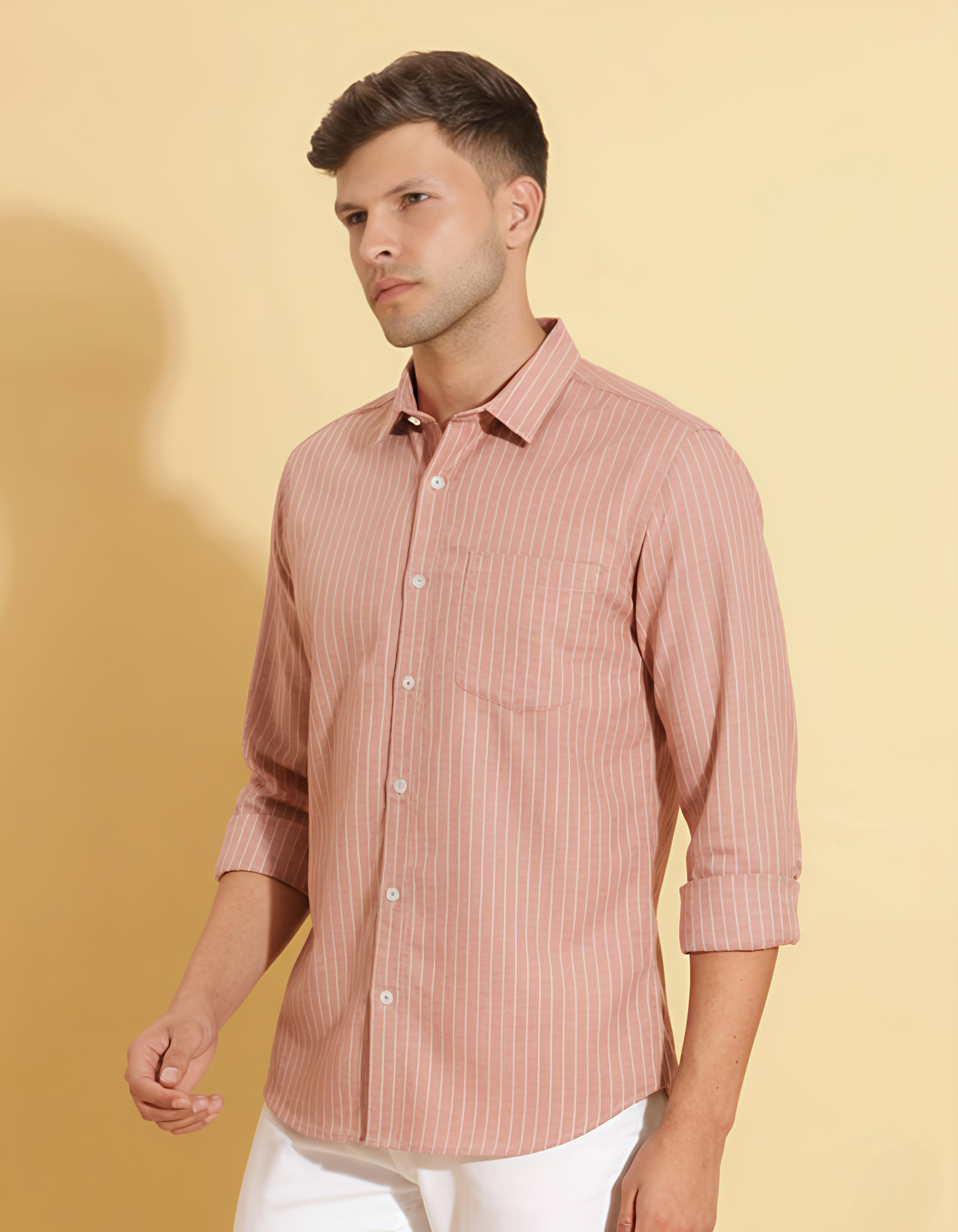 Its regular fit, full sleeves, and breathable cotton weave make it ideal for India’s climate, while the natural mocha brown keeps your look grounded and contemporary.