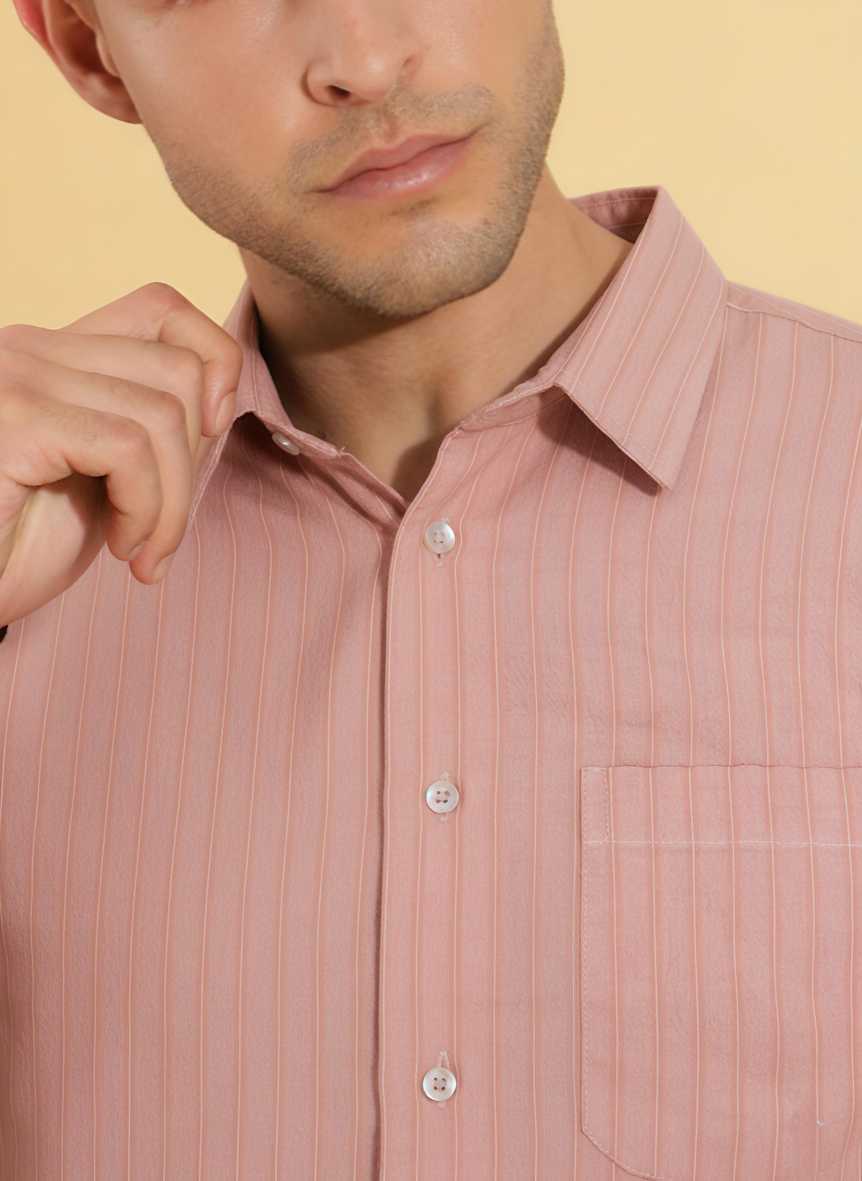 Earthy elegance meets everyday polish with the MochaLine Textured Stripe Shirt. Crafted from luxurious Giza cotton, this piece combines understated mocha tones with a refined self-stripe texture, giving you a crisp look with depth and personality. Whether you’re heading into a client meeting or a dinner out, this shirt offers the right balance of structure and softness.
