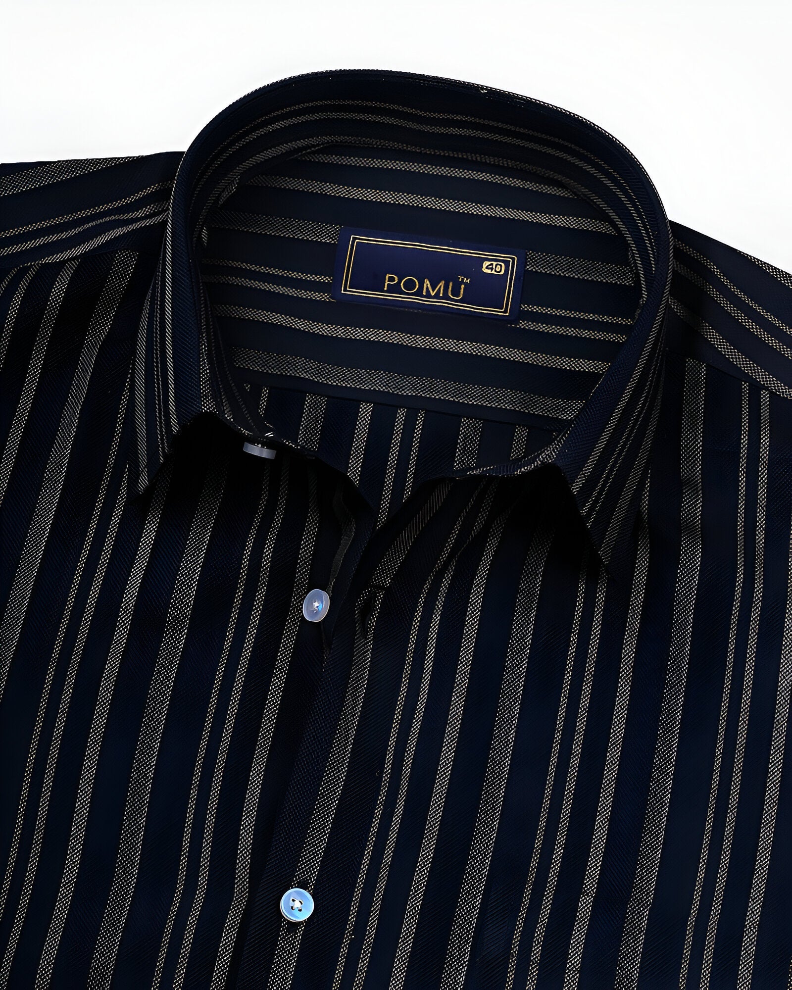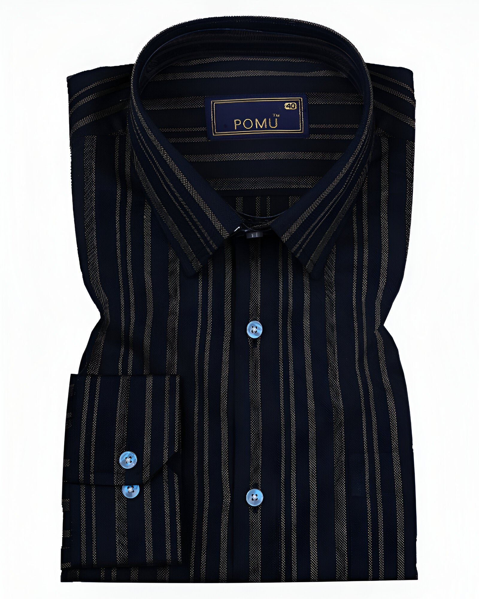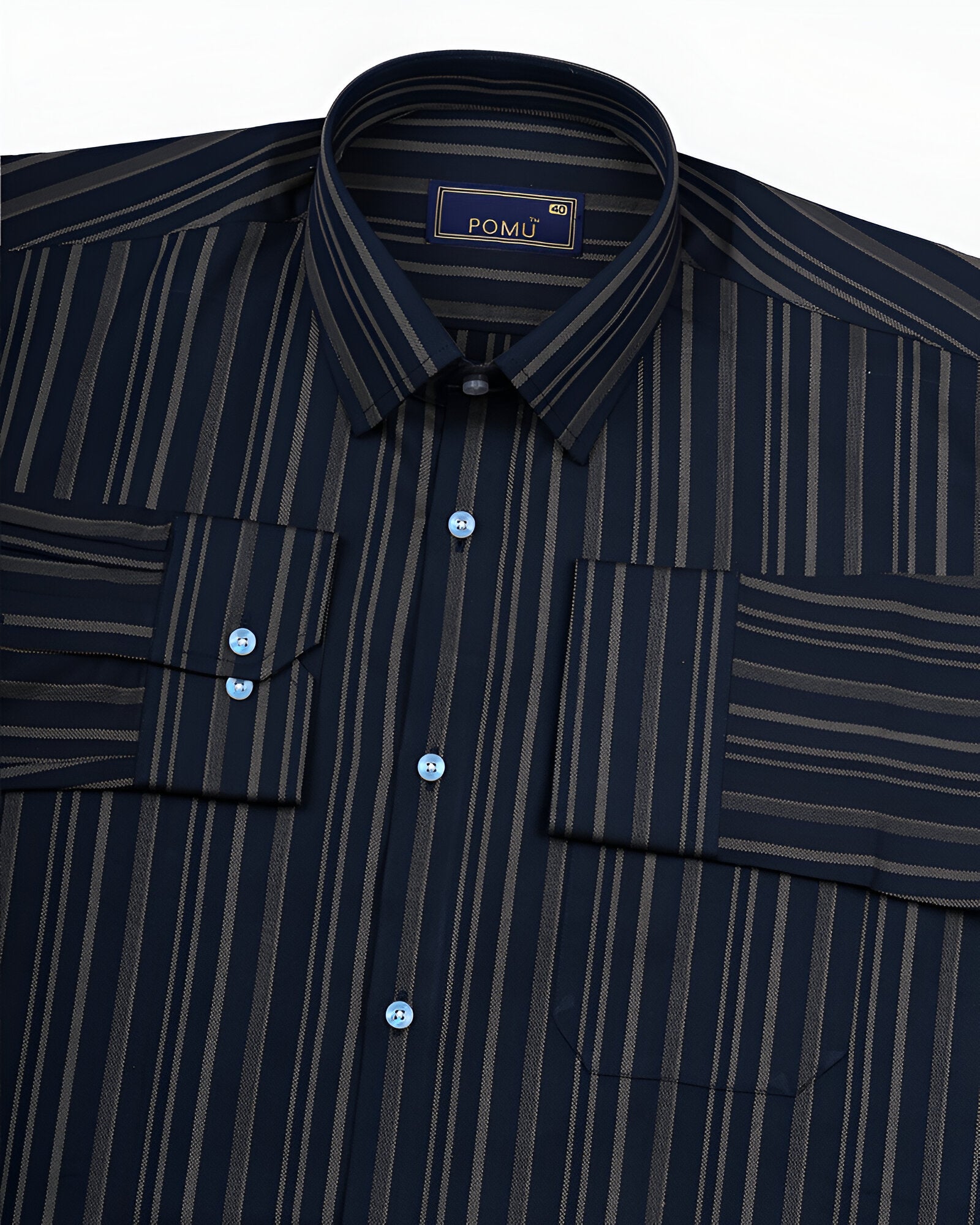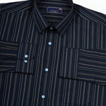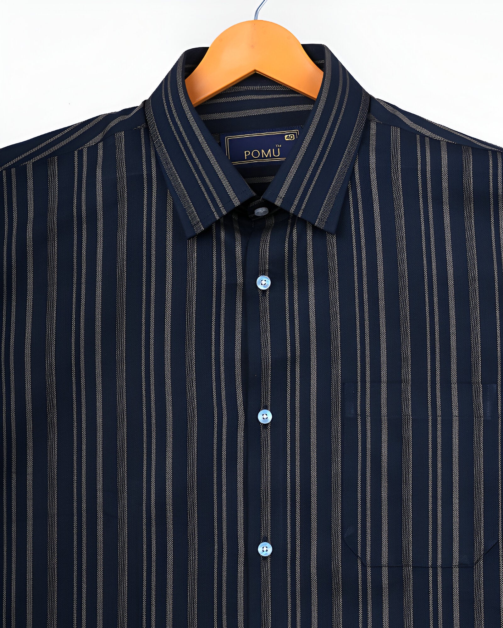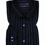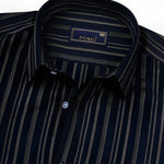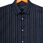 Make a confident style move with this Men's Navy Blue & White Striped Cotton Shirt. The bold vertical stripes create a sleek, elongating effect, while the premium cotton fabric ensures breathable comfort all day long. Cut in a slim fit with full sleeves, this piece is ideal for fashion-forward workdays or weekend outings.