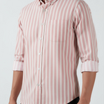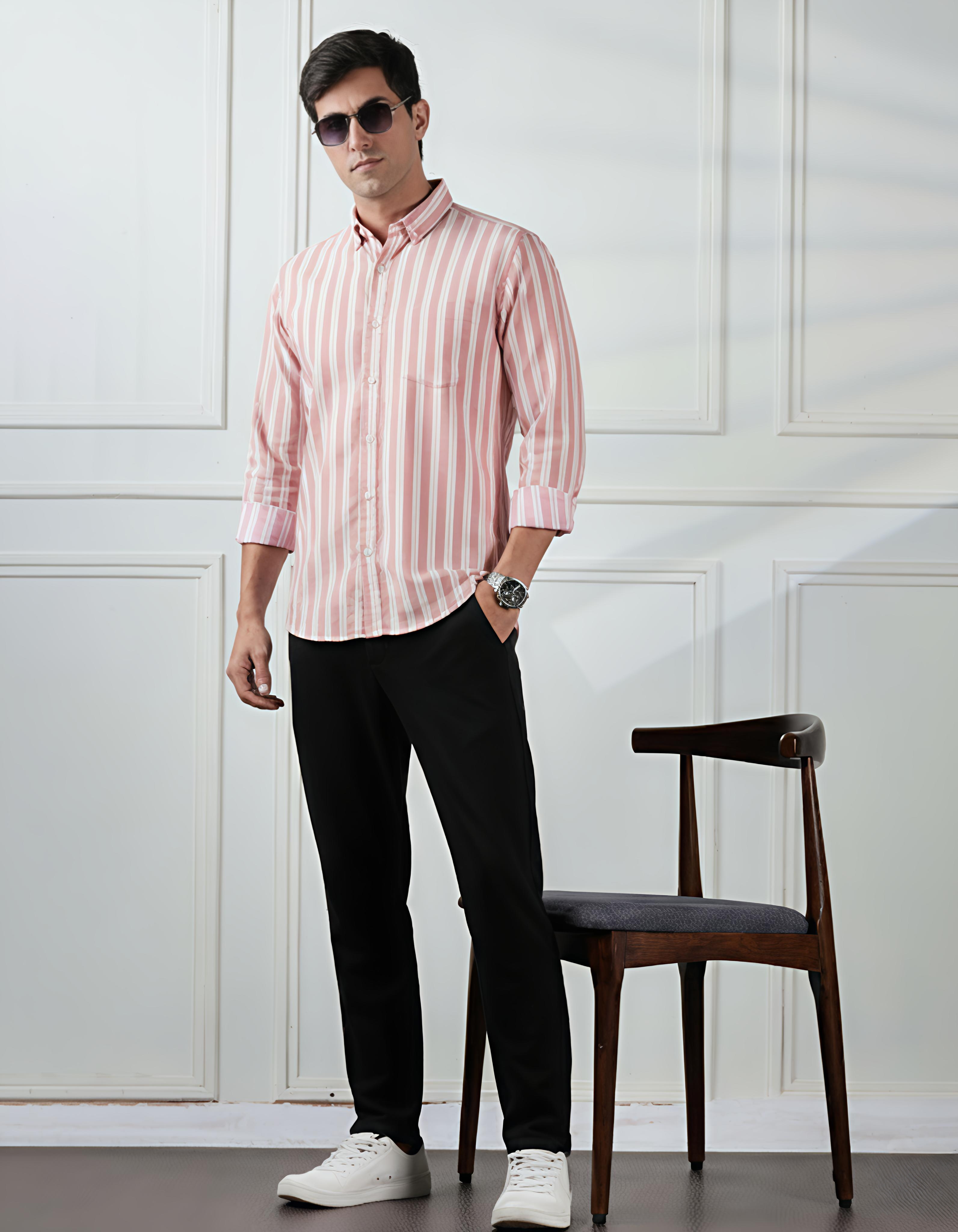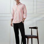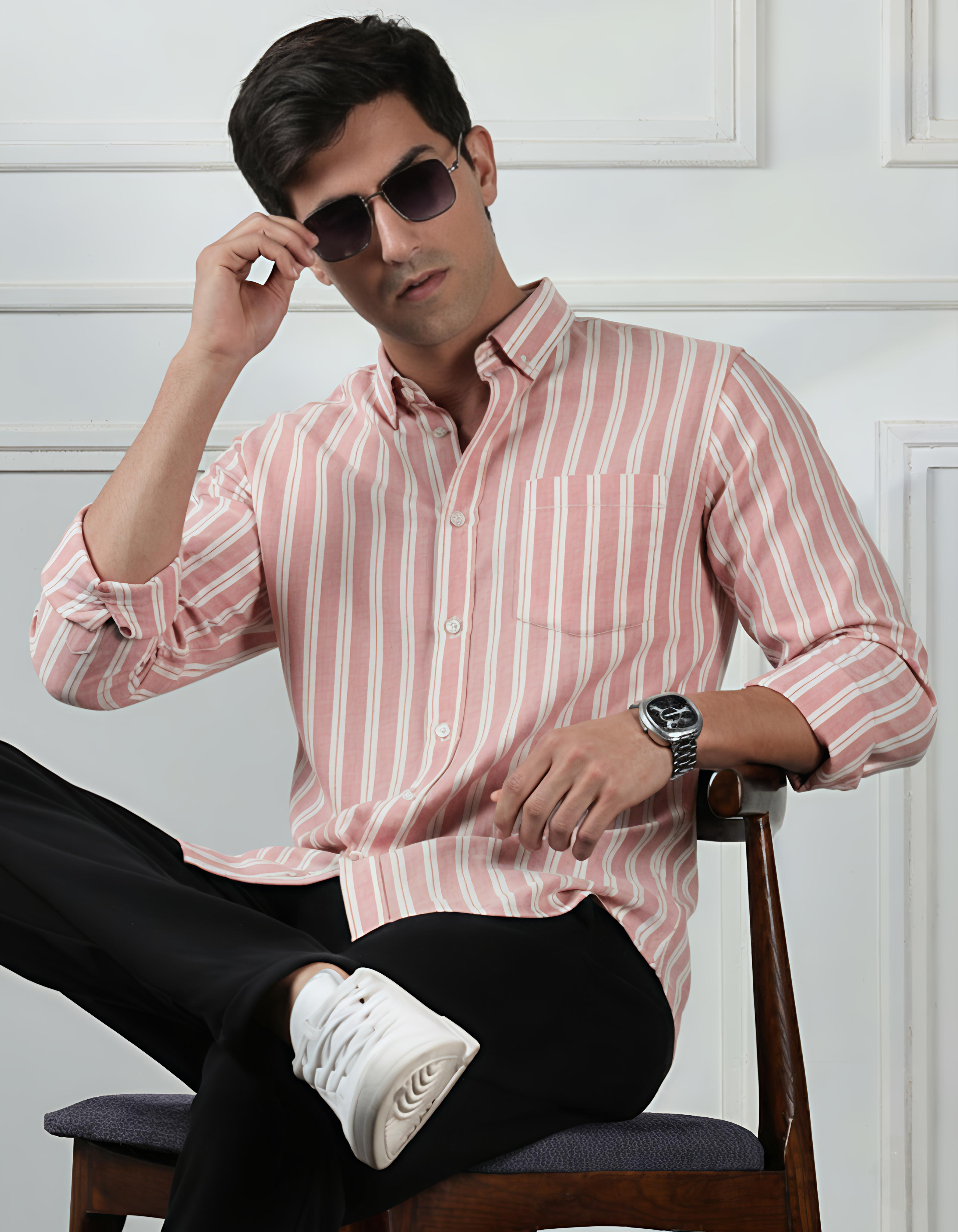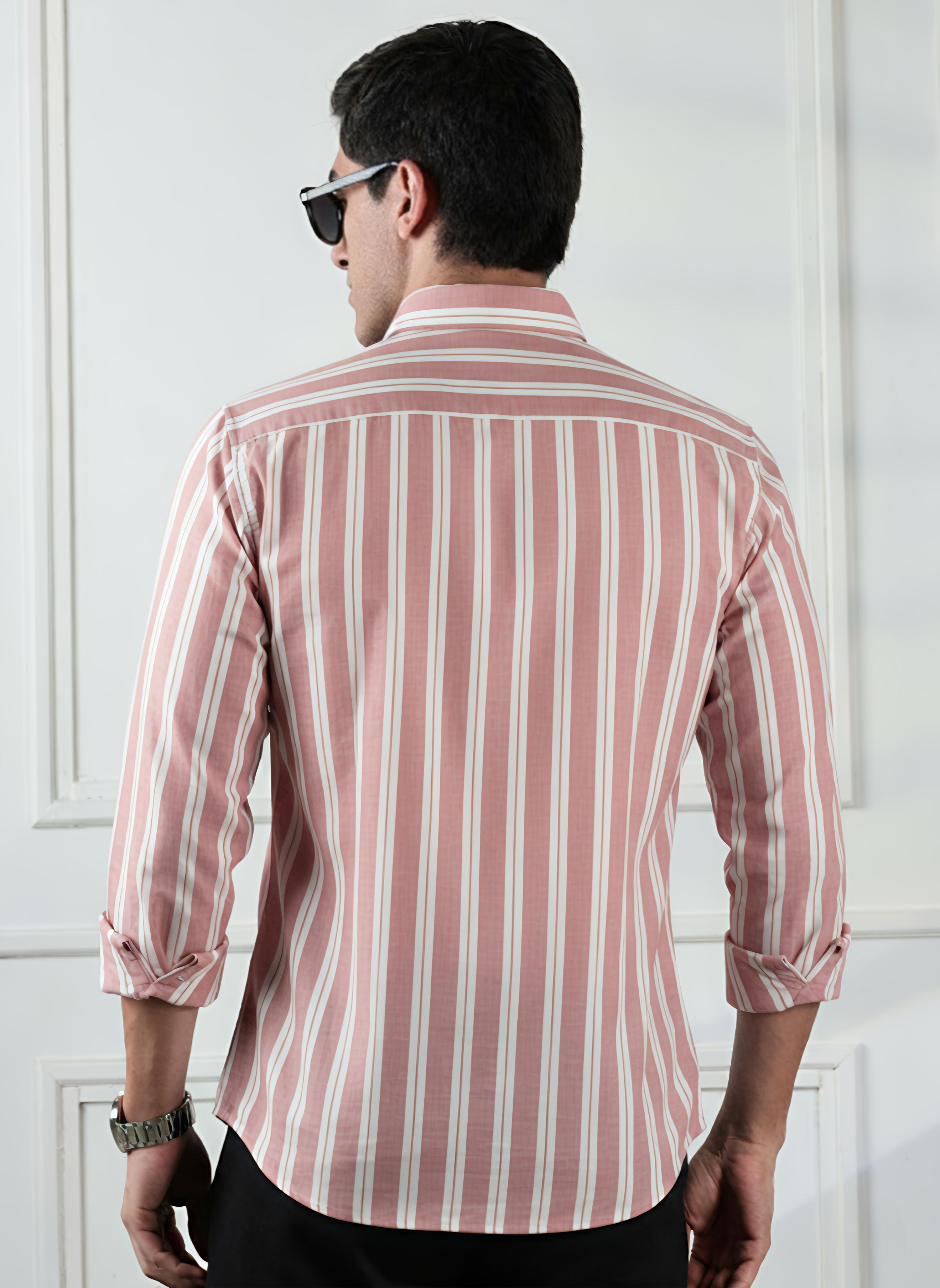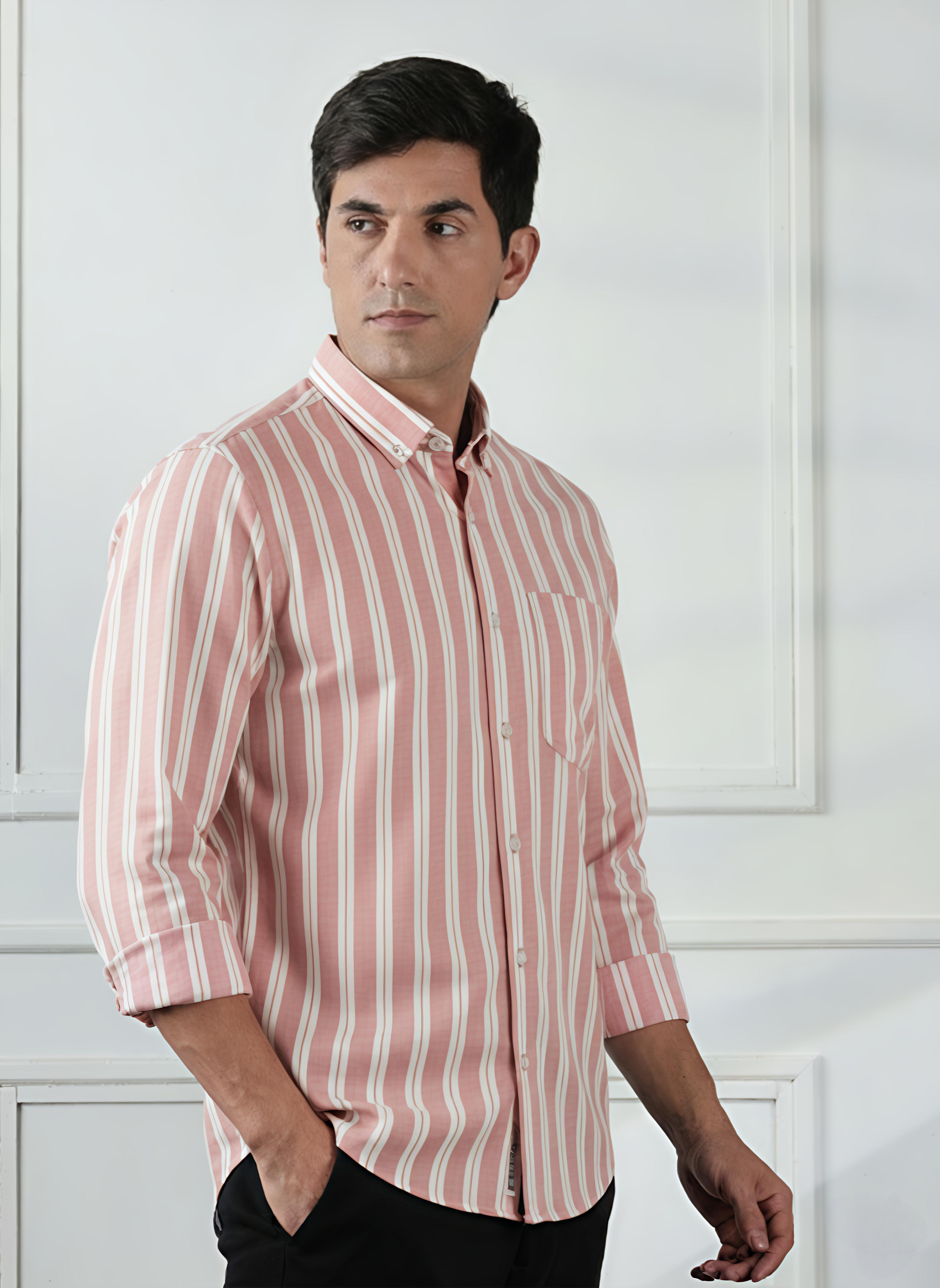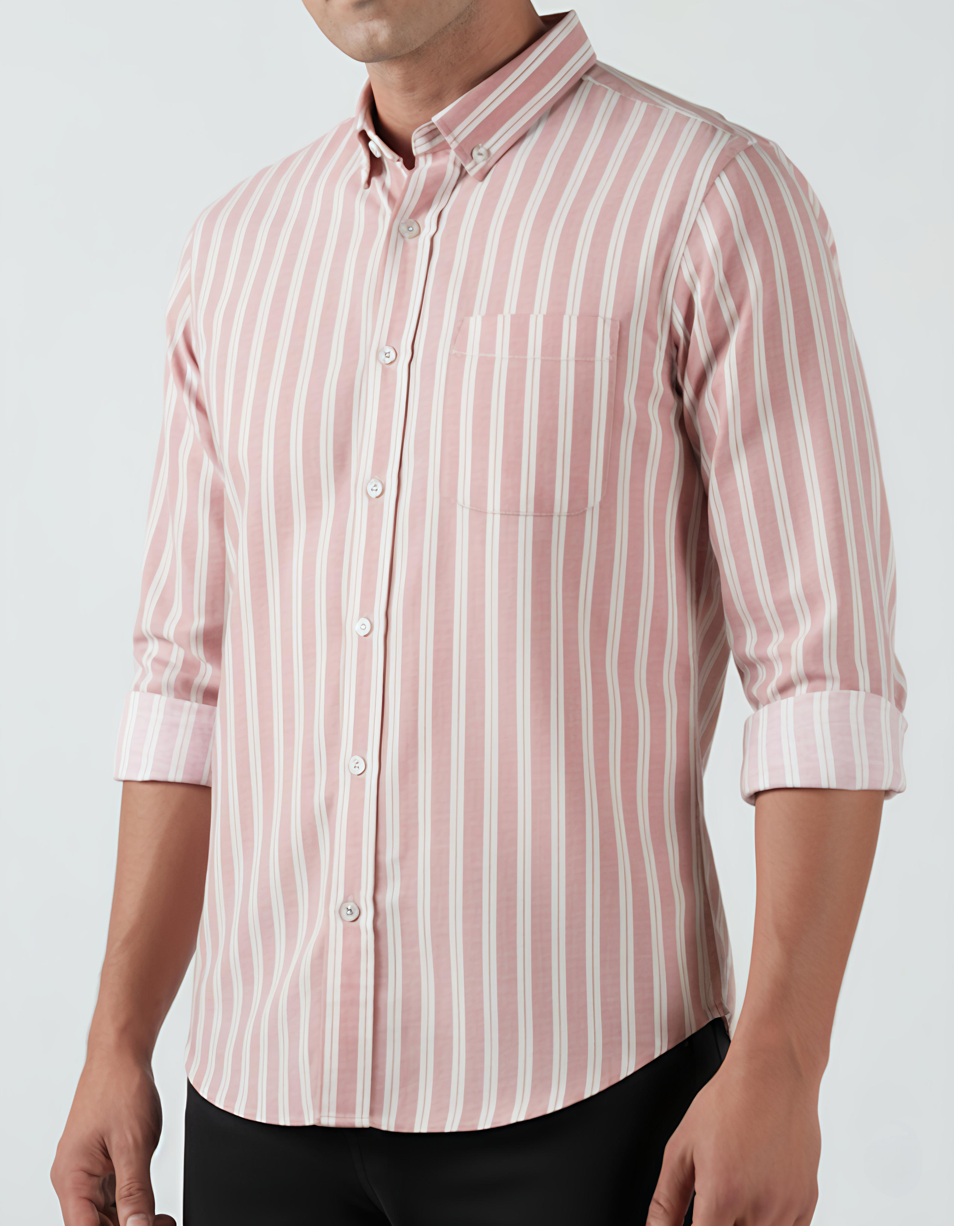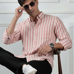 Sophistication meets subtle flair in the RoseForge Copper Rose Striped Shirt — a premium Giza cotton essential for the modern man. Featuring elegant vertical white stripes on a muted copper rose base, this shirt radiates a calm, confident presence. Its color palette feels refreshing yet grounded, perfect for standing out without shouting.