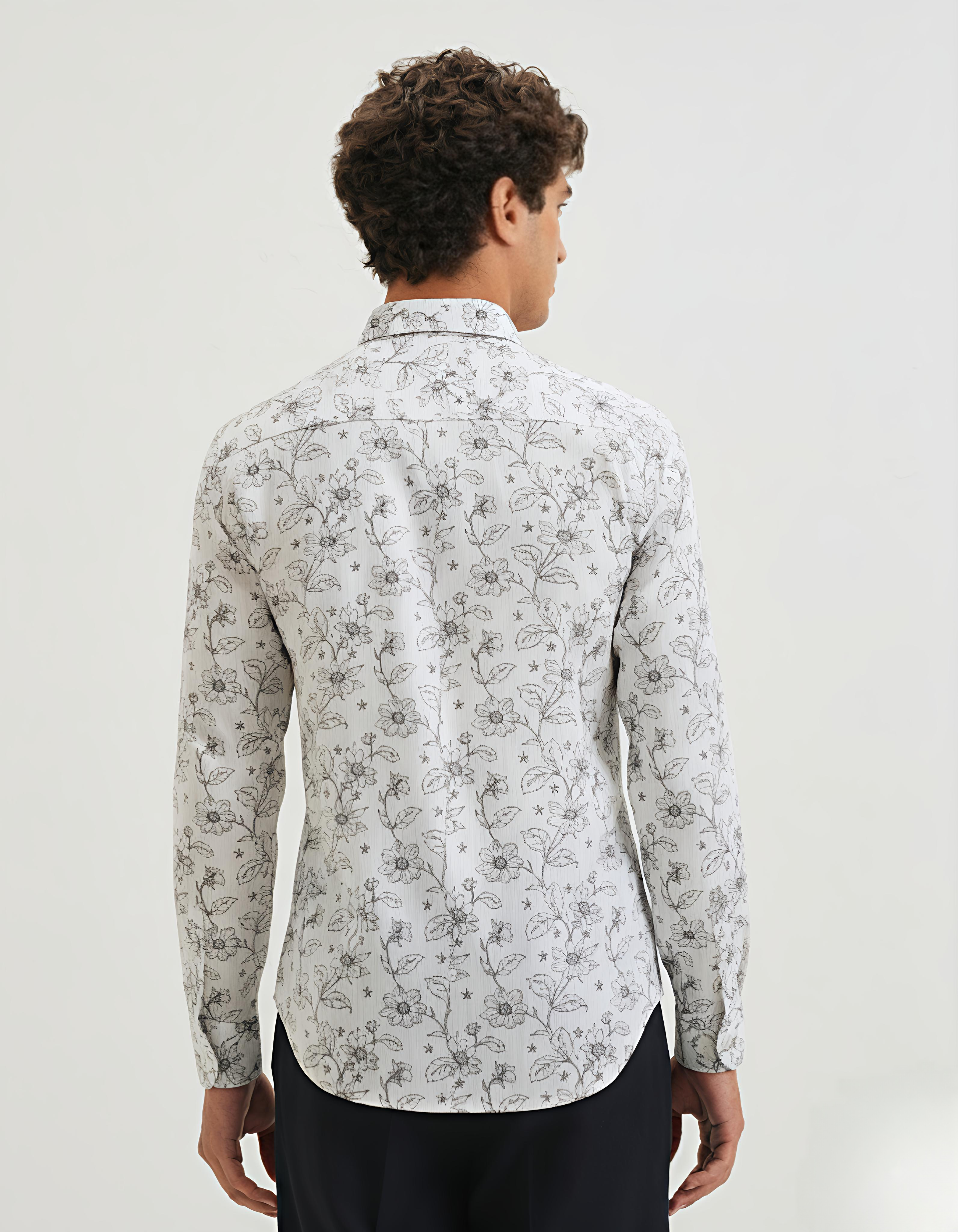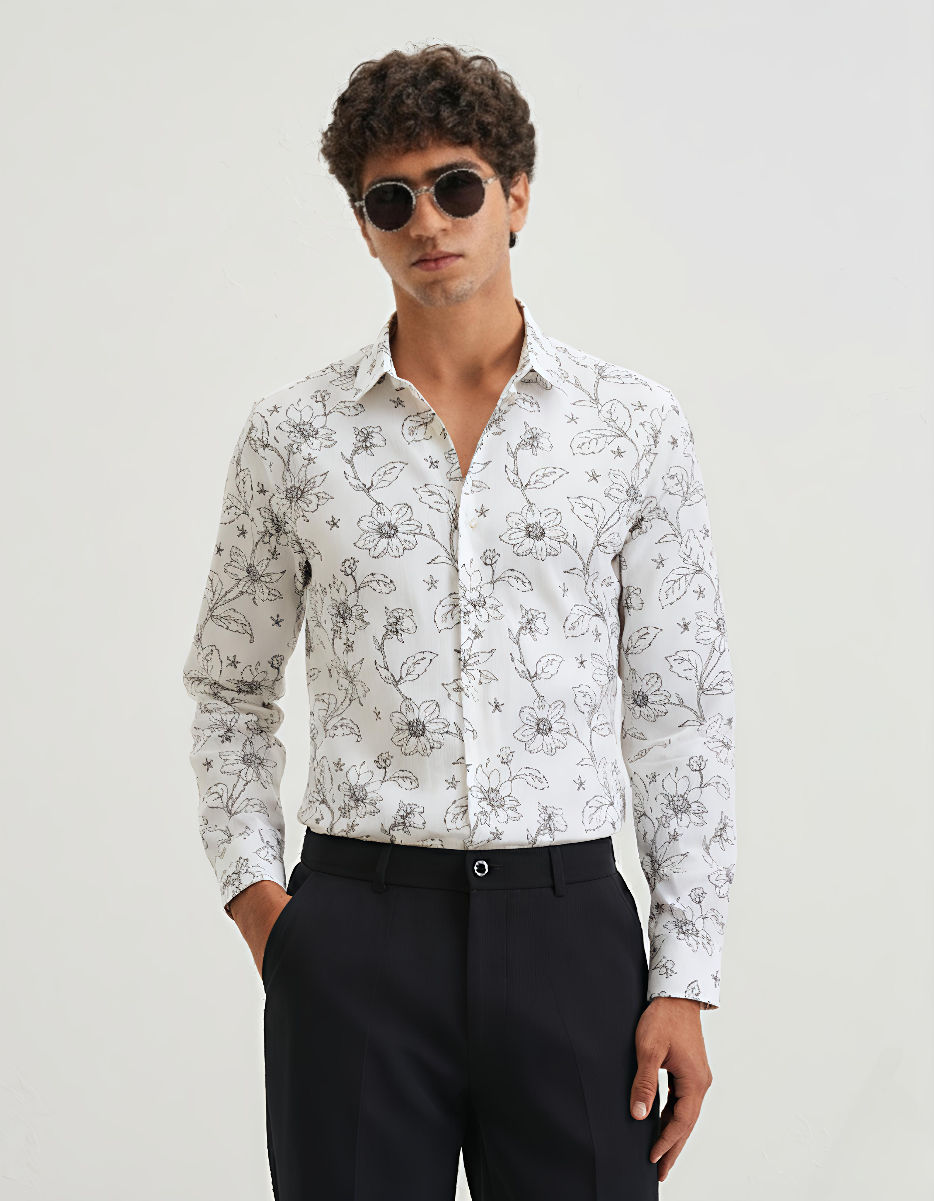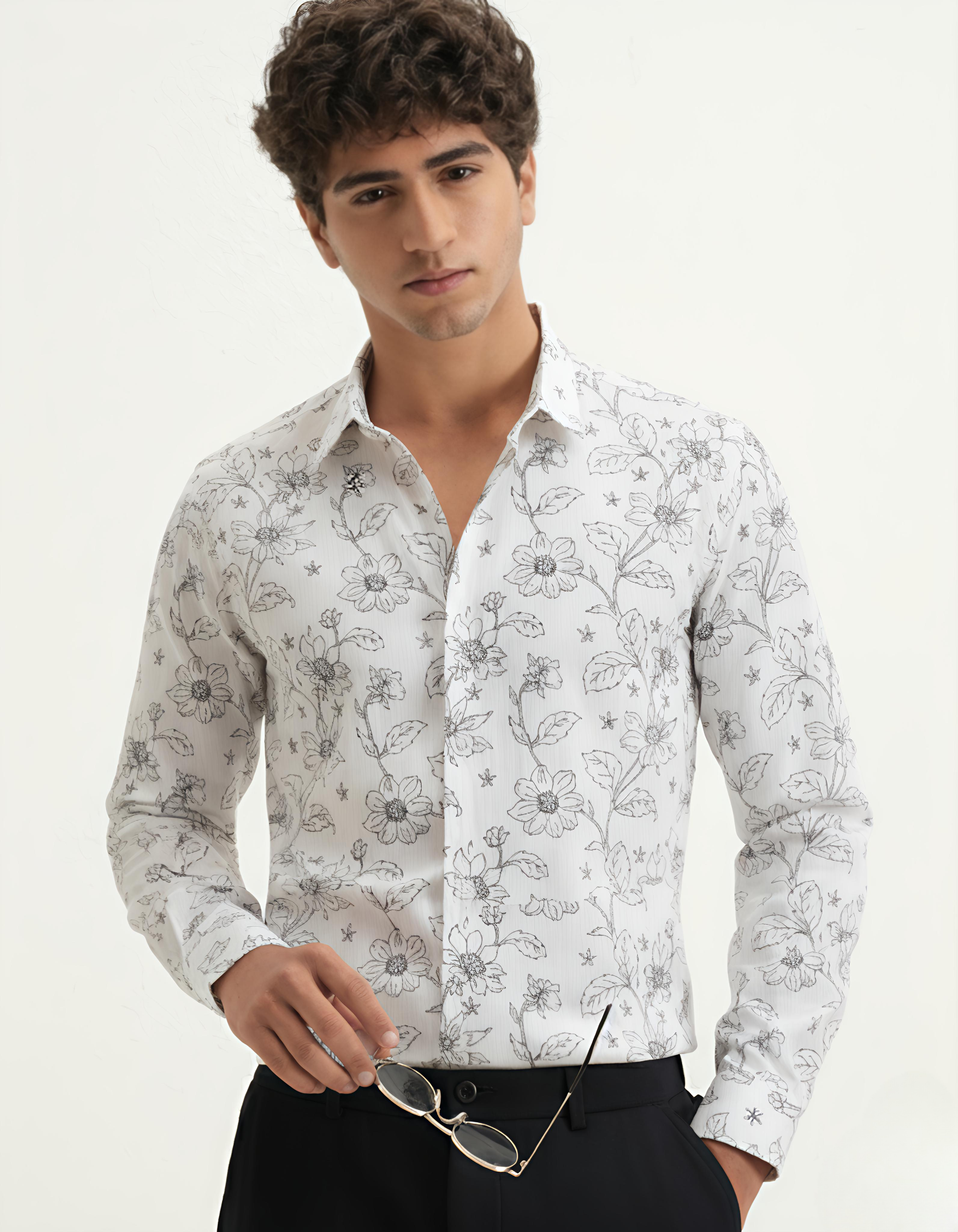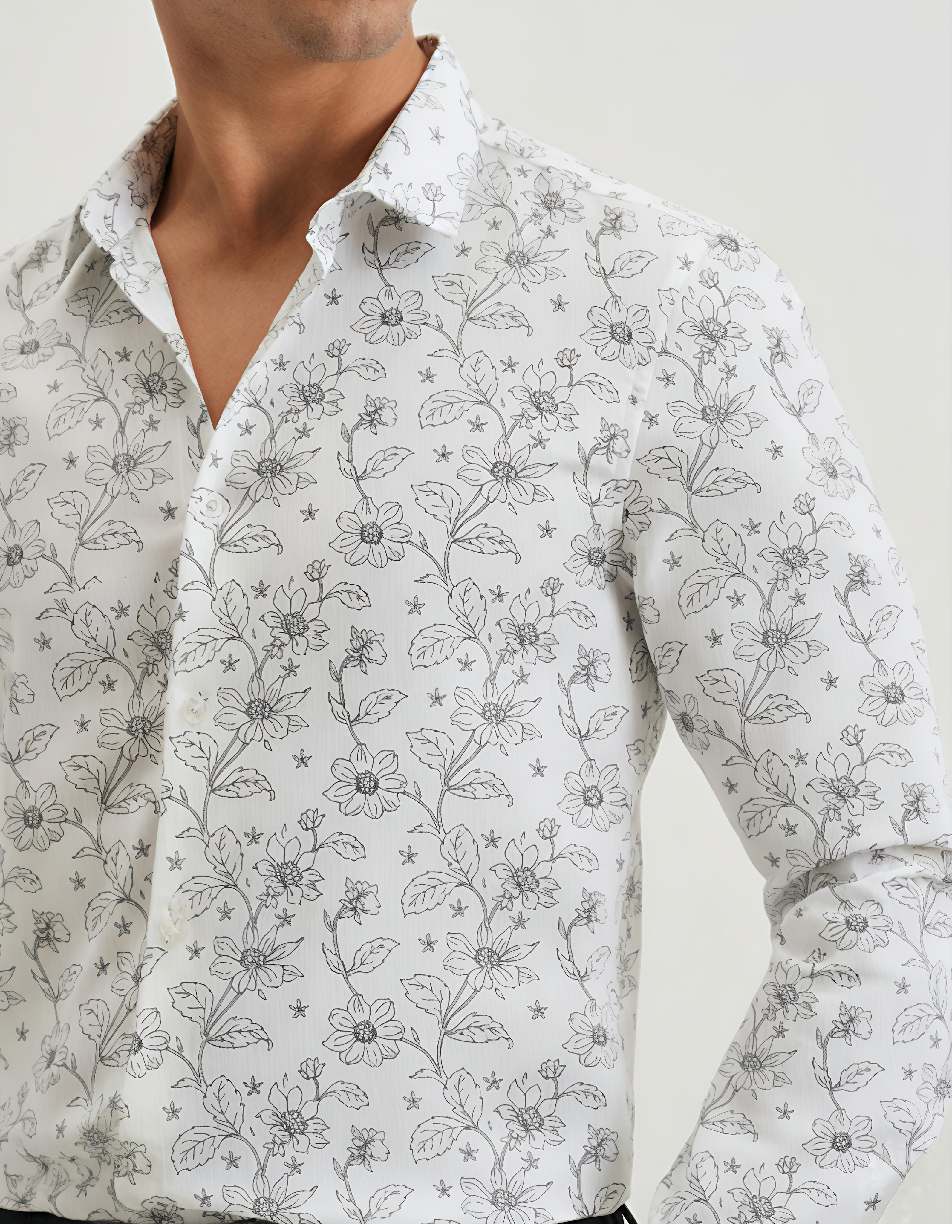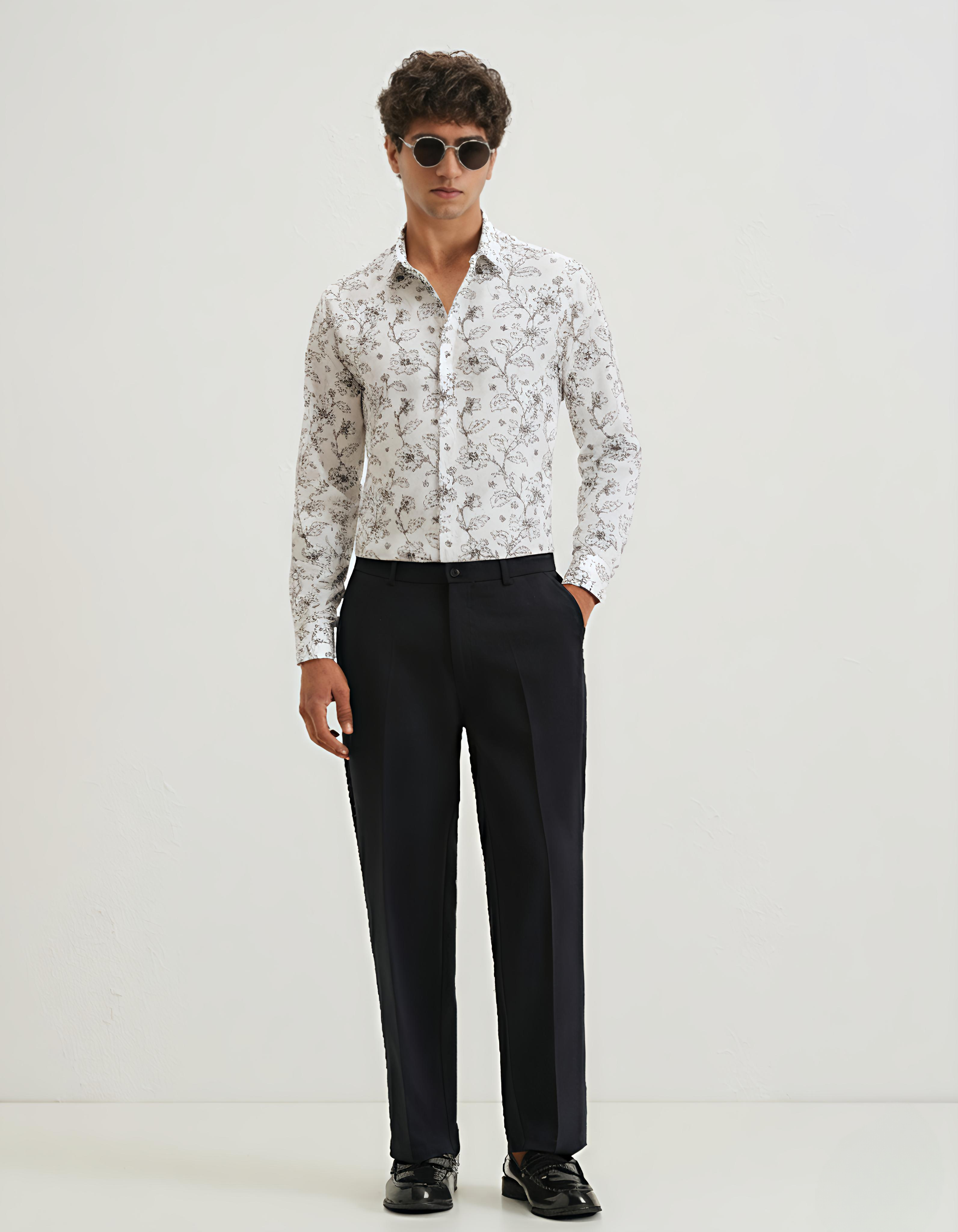 Step into the spotlight with the Thunder Black Floral shirt, crafted from luxurious Giza cotton with an intricate dobby weave. The rich black base sets the tone for bold floral detailing, making it a standout for night events, dinners, and modern festive occasions. Its regular fit and breathable weave offer unmatched comfort with polished flair.