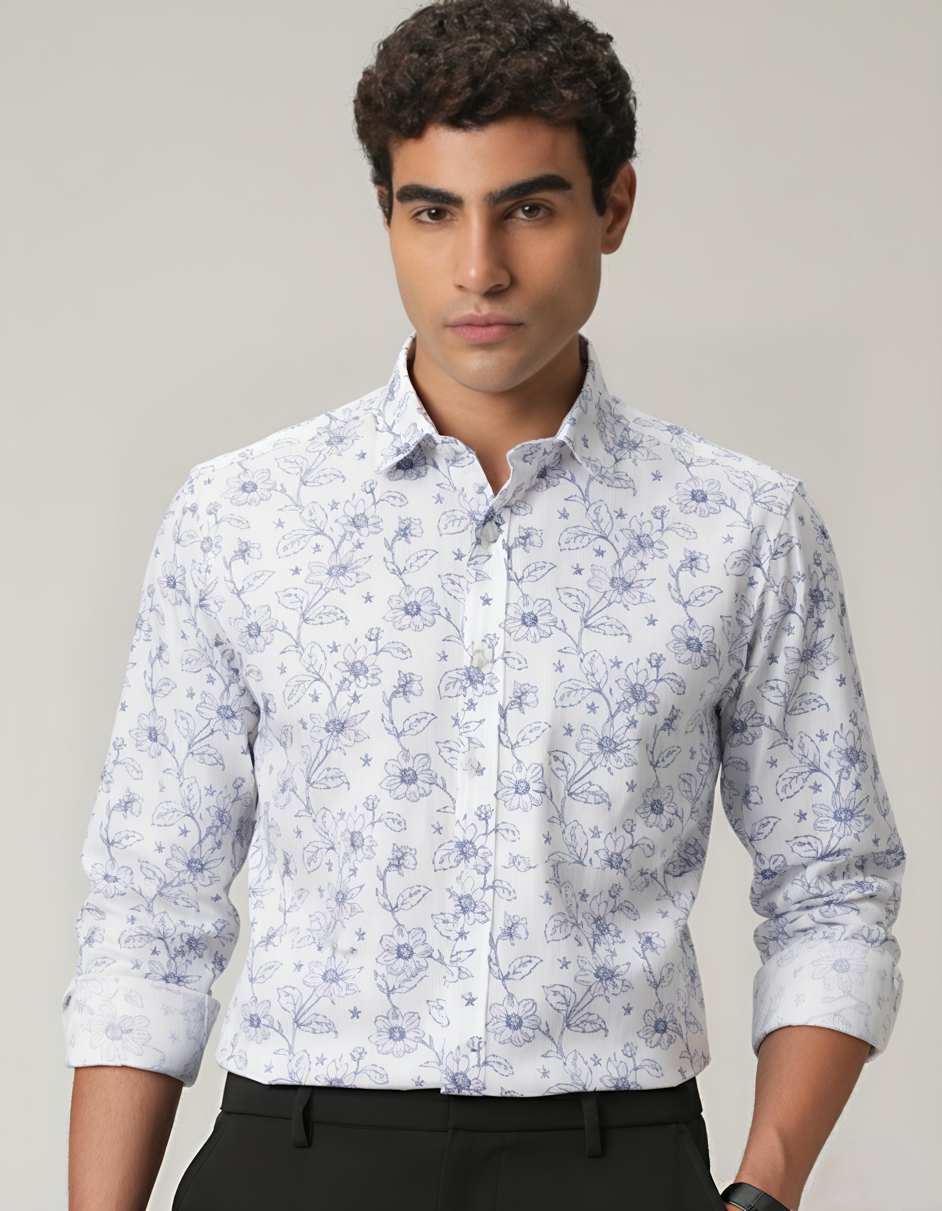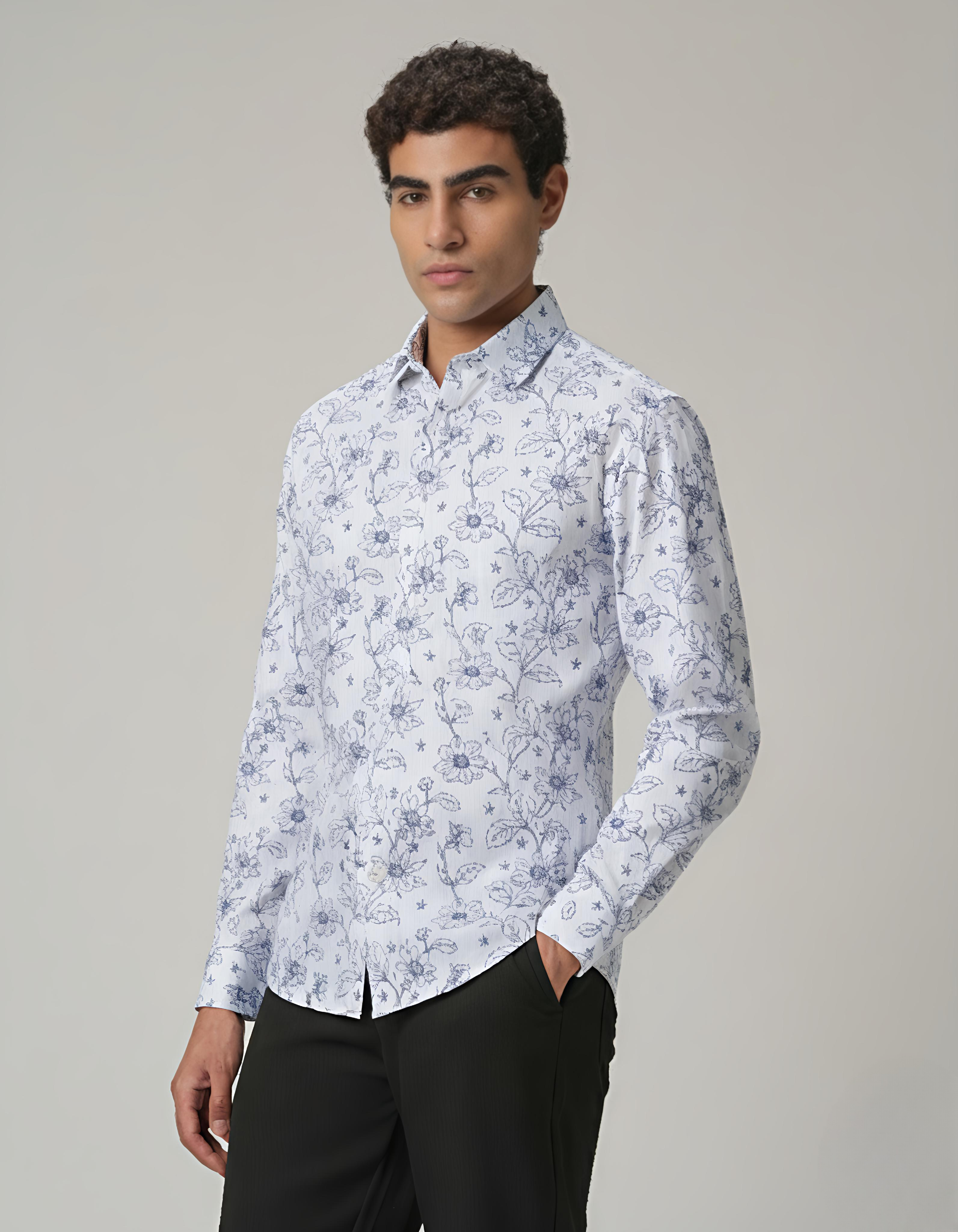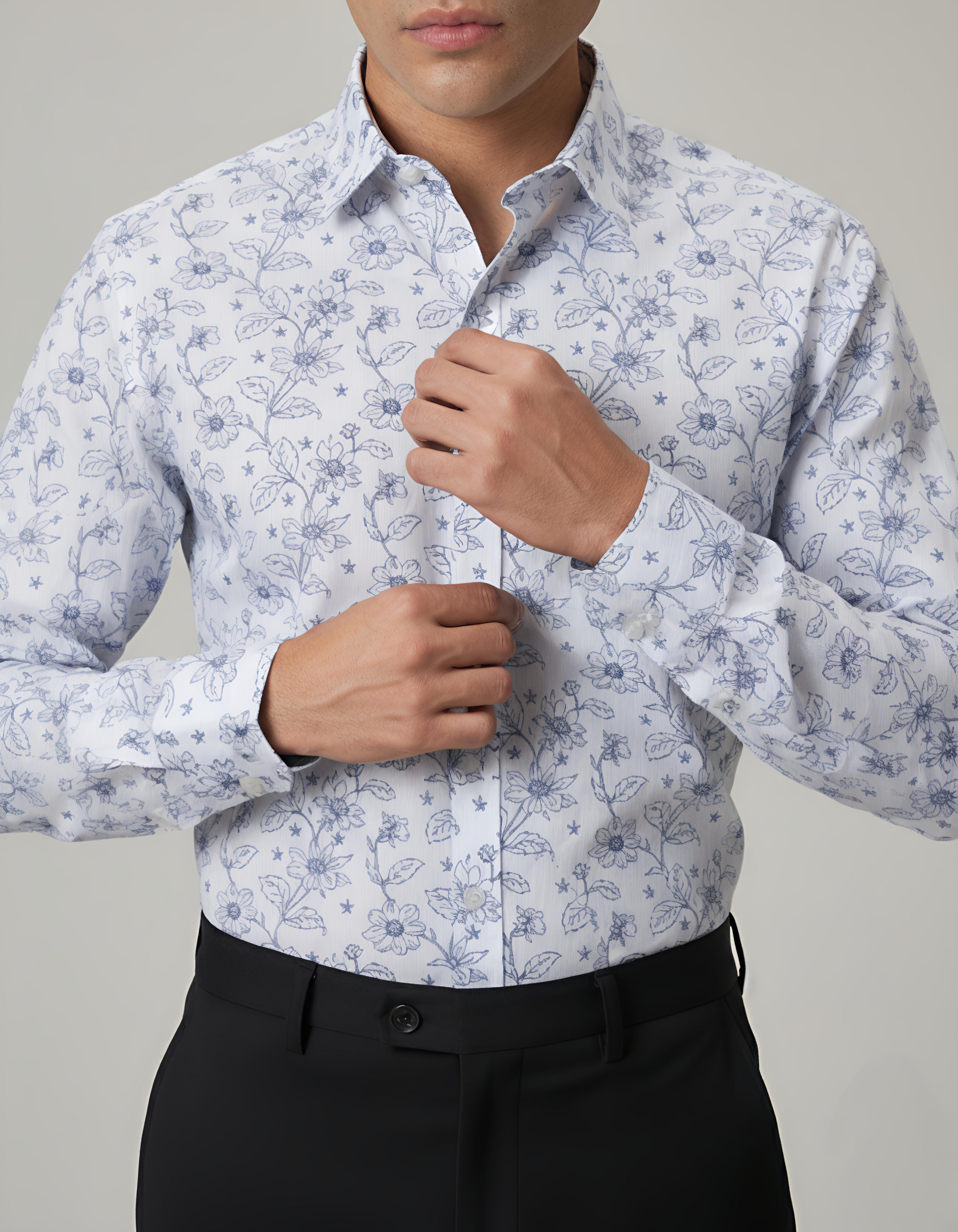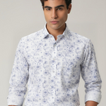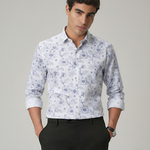 Bring the calm of coastal hues to your wardrobe with this White with Marine Blue Floral shirt. Made from breathable, high-quality cotton, the floral print evokes a relaxed, tropical feel while maintaining a clean, sophisticated look. Ideal for daytime events, travel, or casual Fridays, this regular fit shirt is both stylish and versatile.
