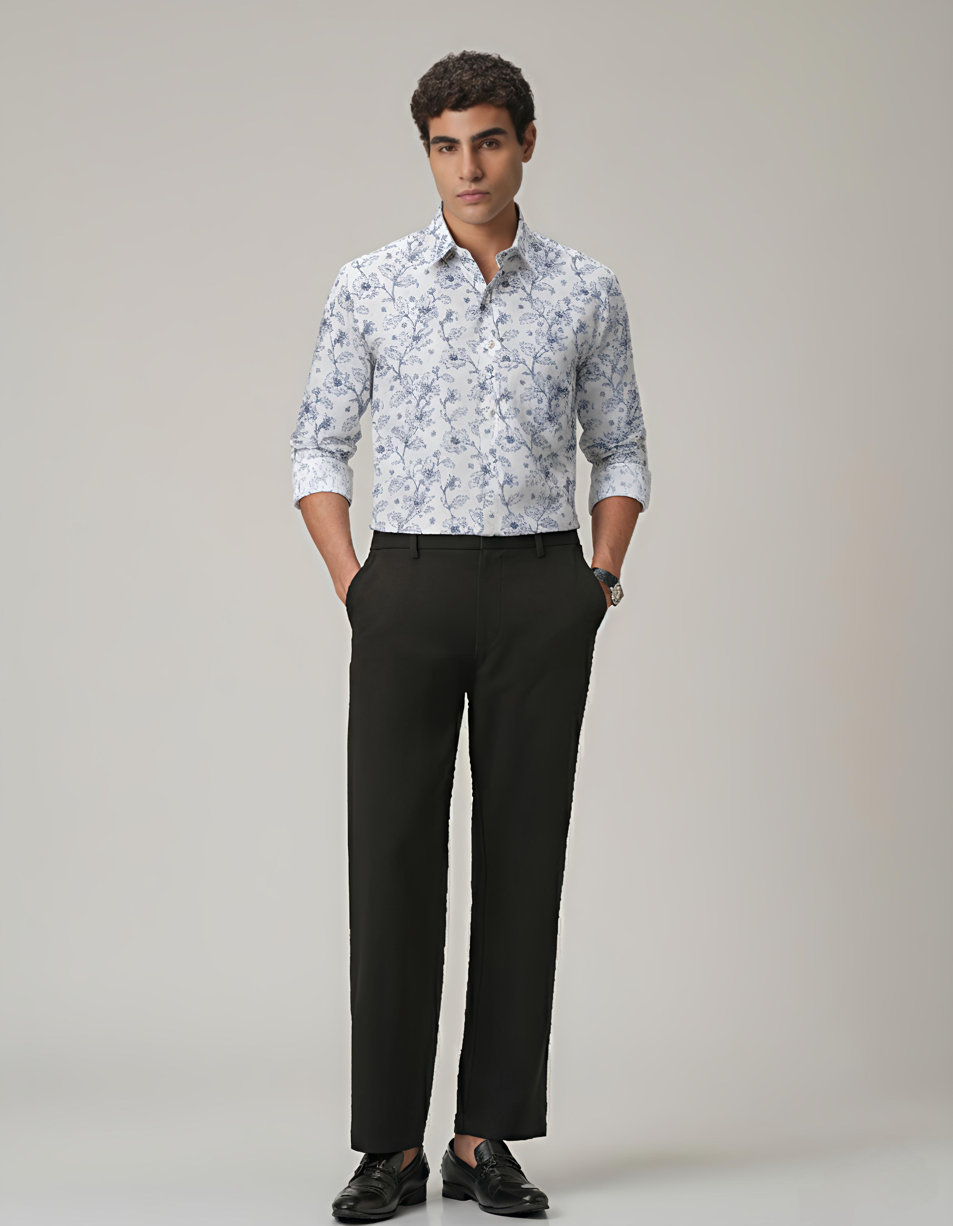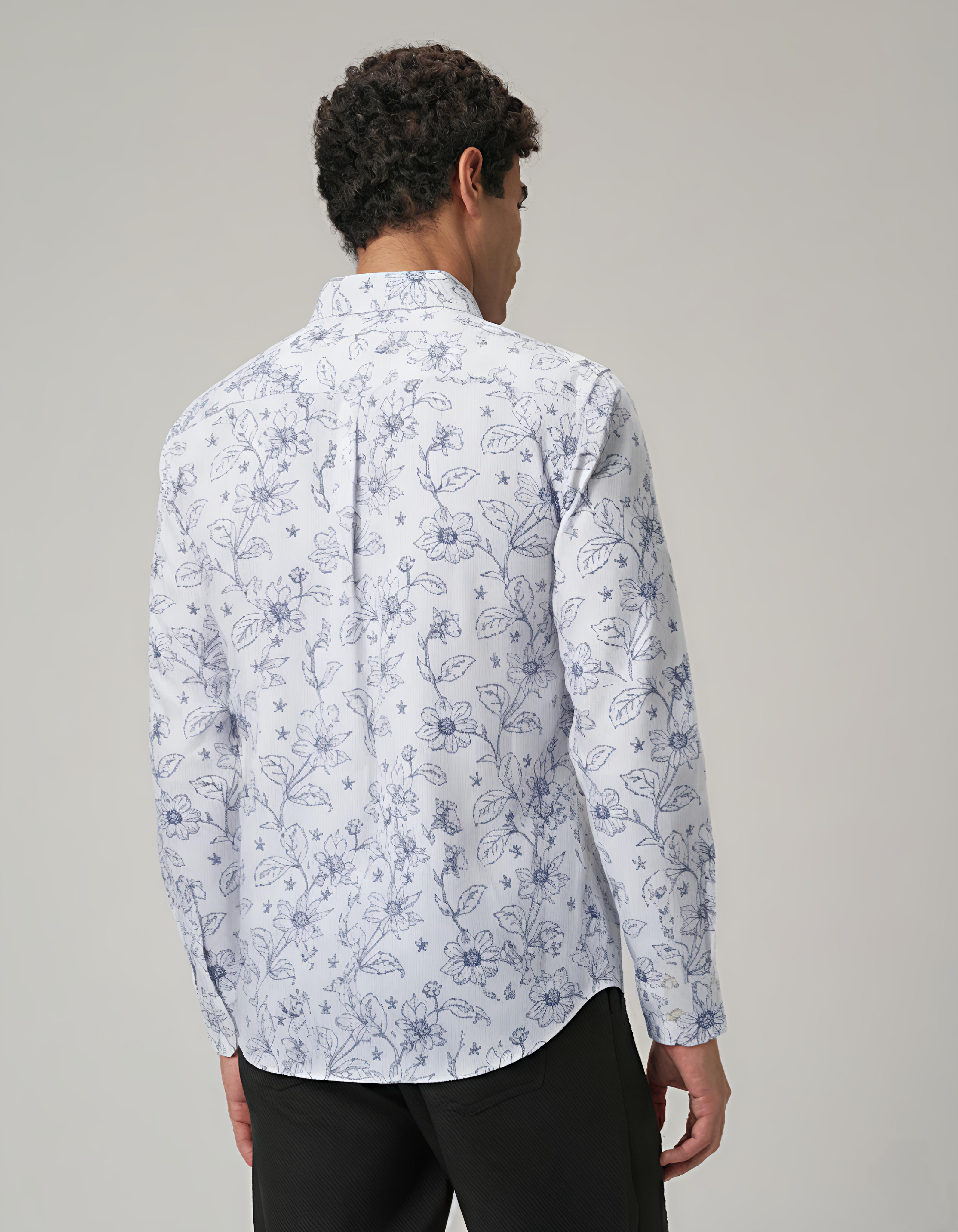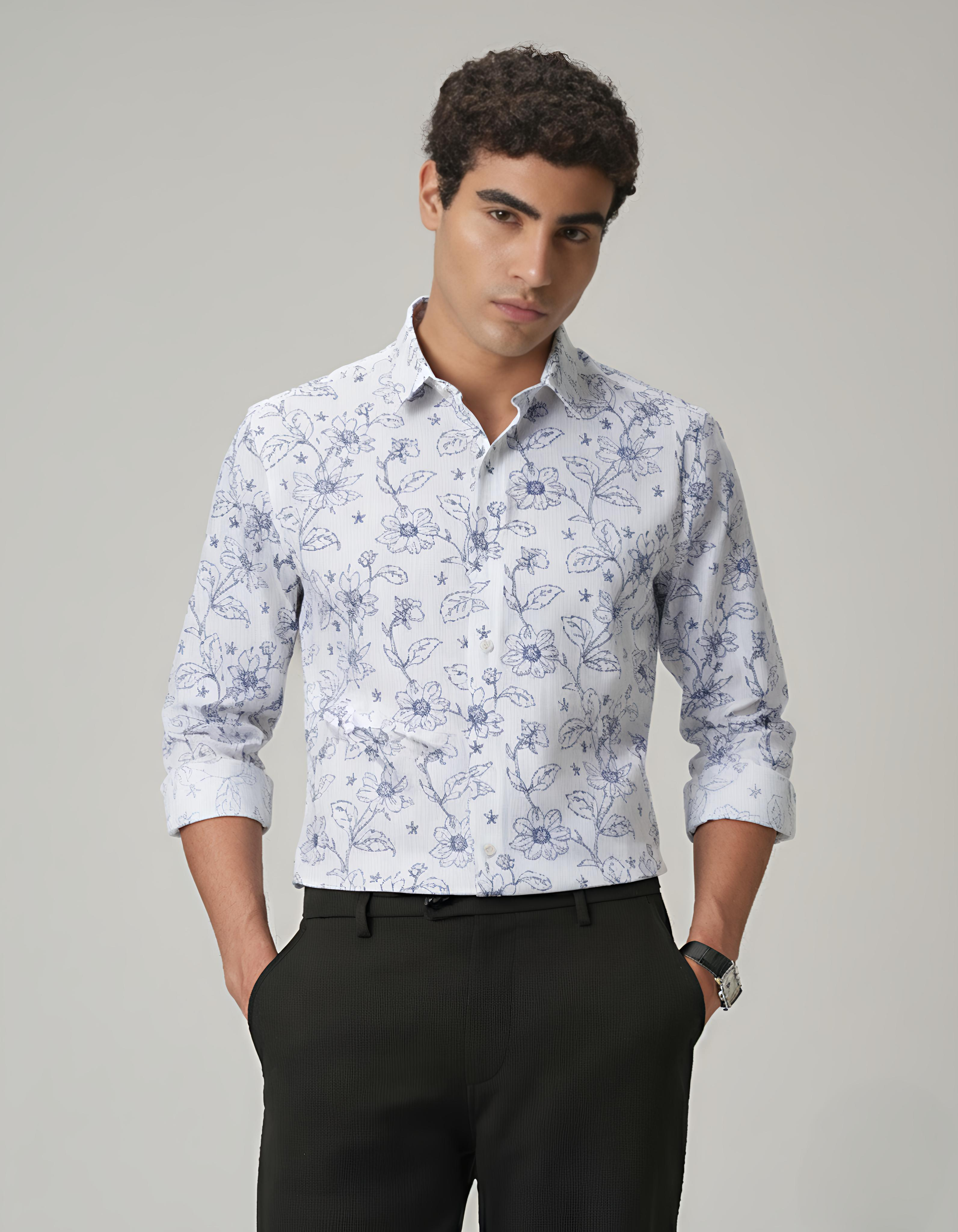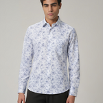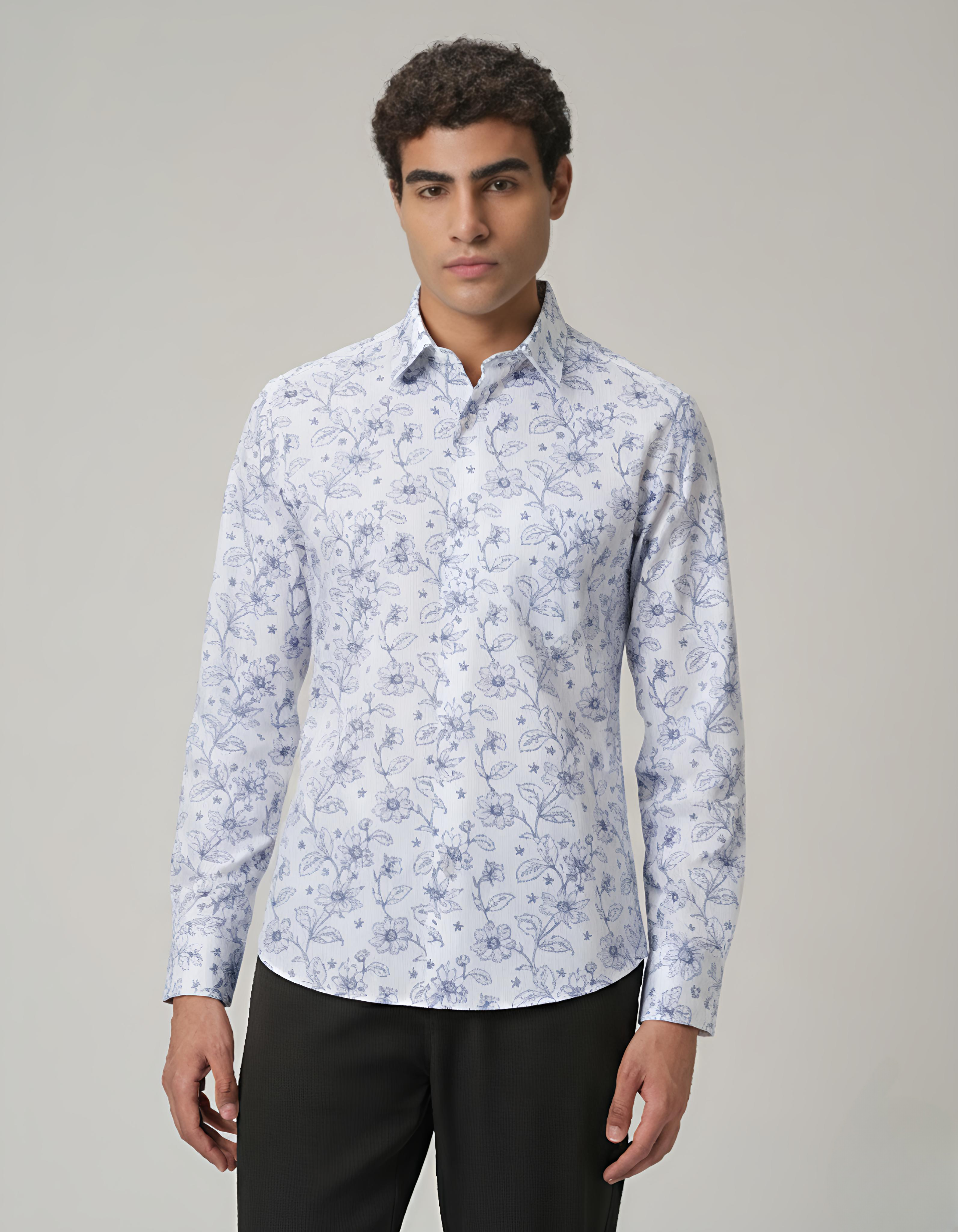 Bring the calm of coastal hues to your wardrobe with this White with Marine Blue Floral shirt. Made from breathable, high-quality cotton, the floral print evokes a relaxed, tropical feel while maintaining a clean, sophisticated look. Ideal for daytime events, travel, or casual Fridays, this regular fit shirt is both stylish and versatile.